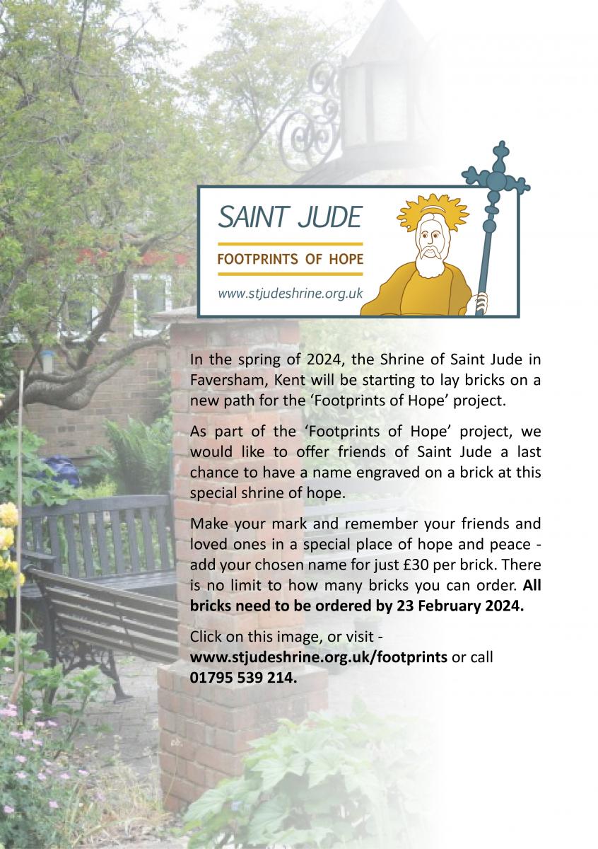 This spring, the Shrine of Saint Jude will be starting to lay bricks on a new path for our ‘Footprints of Hope’ project.