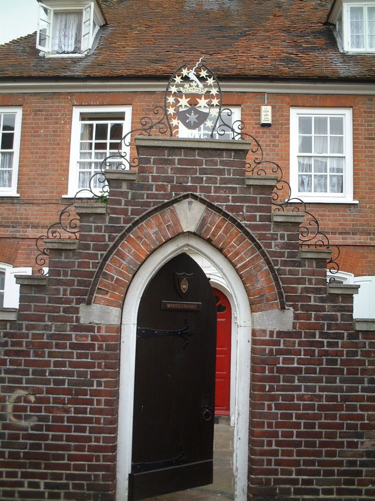 The fine Georgian house next door to the church is the priory where the Carmelite friars live. Known today as “Whitefriars”, it is the oldest building on the site and rated as an ancient monument. It stands on the steep slope that drops from the level of Tanners Street down to the banks of the West Brook (on which stand the Shrine office buildings, the Shrine Information Centre, the Shrine Welcome Centre, the remains of an orchard and the car park).